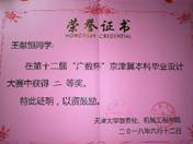 | 三等奖 | 王子豪 | 微通道换热器设计分析与性能试验 | 梁国柱 |