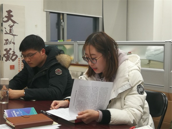 2019年2月23日晚八点,宇航学院ZY18151党支部在新主楼B326召开了寒假学习读书交流会。会议由梁炫烨同志主持,18级辅导员牛冲同志出席,应到党员8人,与会7人,请假1人。