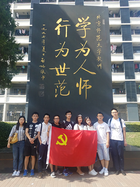 9月9日上午,五名北航ZY17152党支部的同志来到了北京师范大学,受到了北师大教育学部党支部的同志的热烈欢迎。我们有些同志是第二次来到北师大进行共建活动,但是有的同志还是第一次。在这样的情况下,北师大的同志们依然带领我们参观了中国师范院校的最高学府,并且和我们讲述了很多标志性建筑物的历史和由来,使得我们对北师大的了解从少到多,从多到精。北航的同志们深深的体会到了兄弟院校北师大的厚重历史和喷薄而出的人文情怀。我们在北师大著名的“学为人师,行为师范”的石碑面前合影留念。